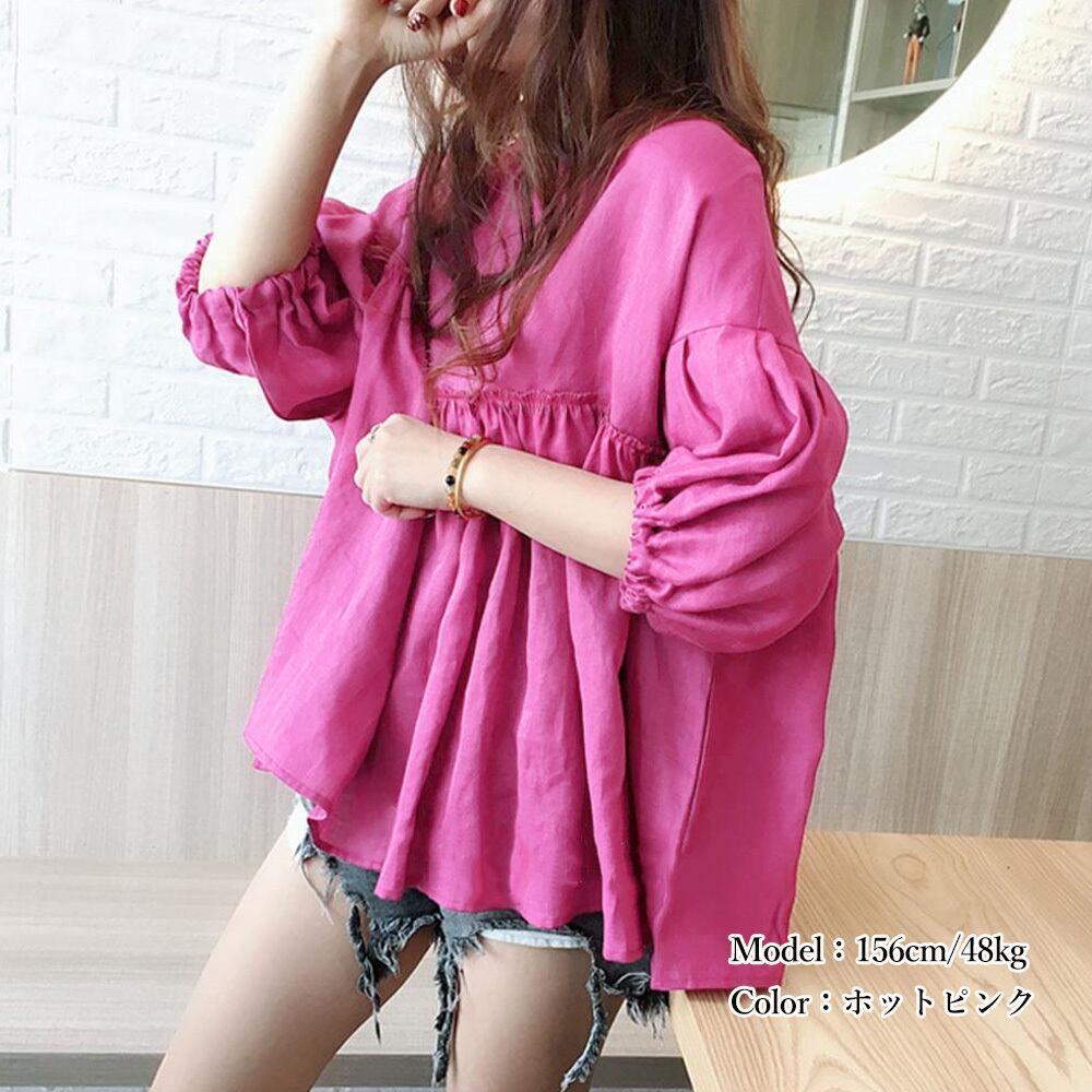 ギャザーブラウス夏 Aライン体型カバー ボリューム袖着やせ