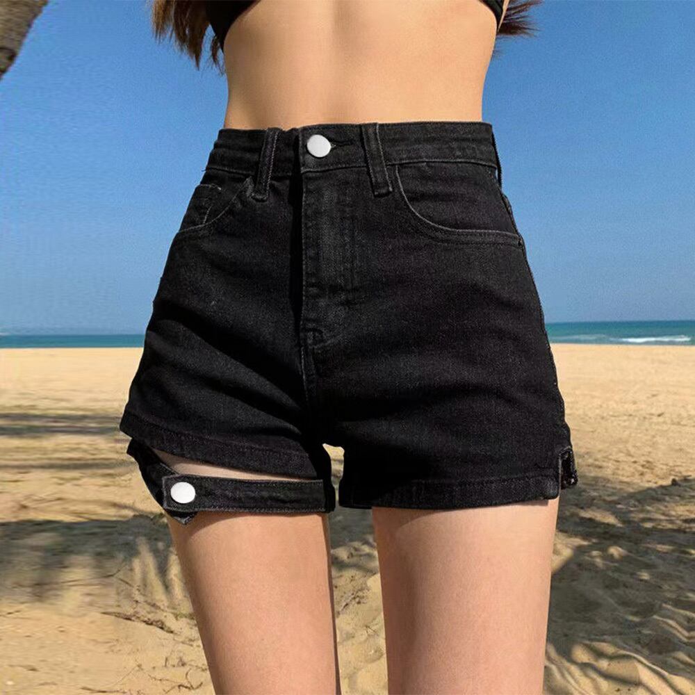 女性らしいシルエットが際立つセクシーなハイウエストデニムショートパンツ