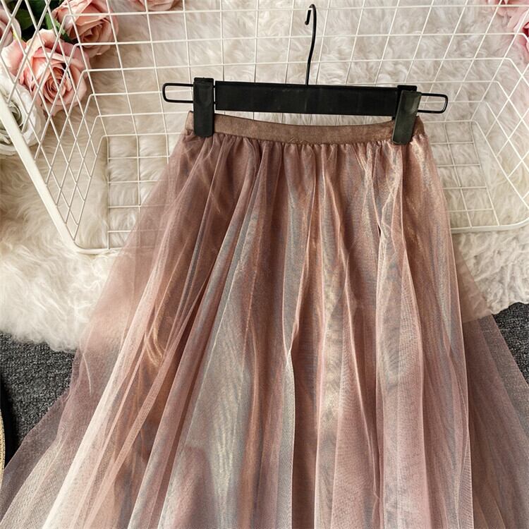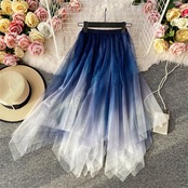 季節の単品 早い者勝ち イレギュラー 2層 グラデーションカラー レーヨン スカート 夏 aライン