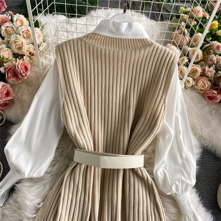 秋冬 2点セット 中・長セクション シャツ ニット ベスト 受け取って腰