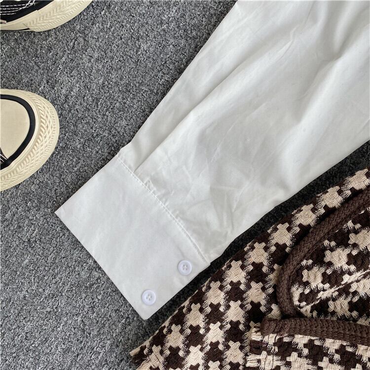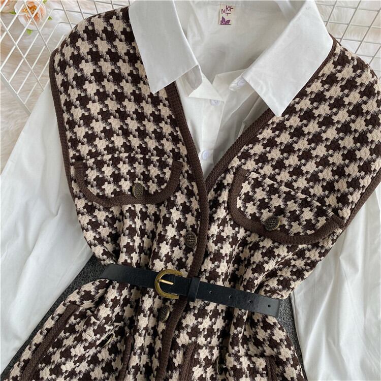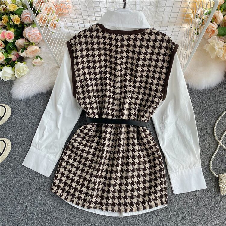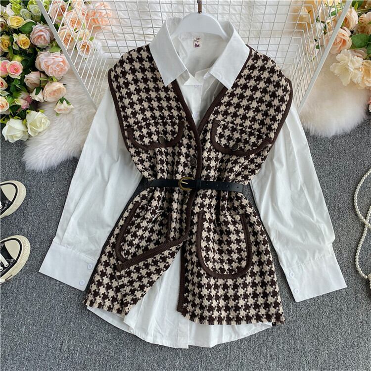 気質 千鳥格子 レディース 大人気 ゆったりする ベスト シャツ 2点セット