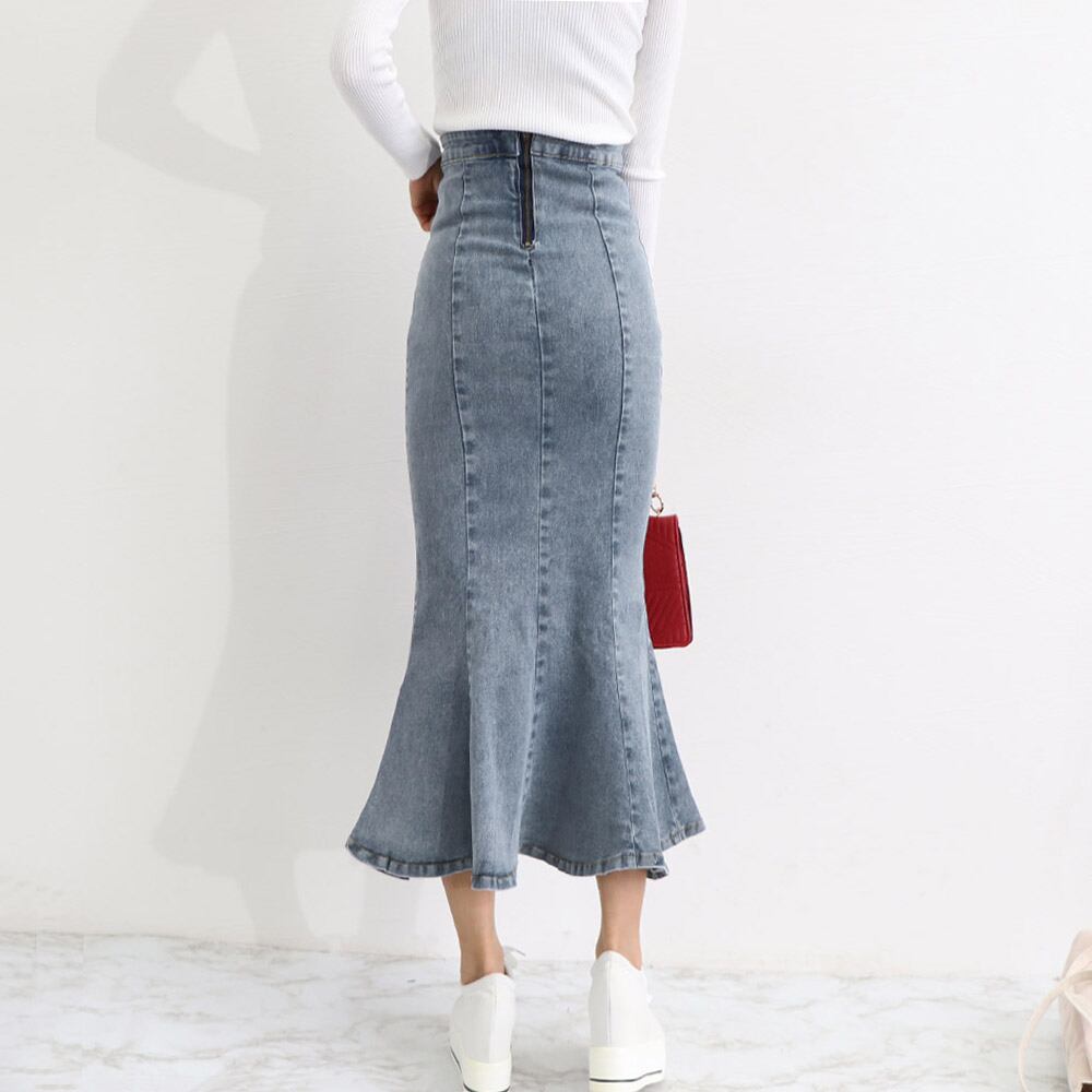 ハイウエスト通勤服 ストレッチボトムス 人魚デニムスカート