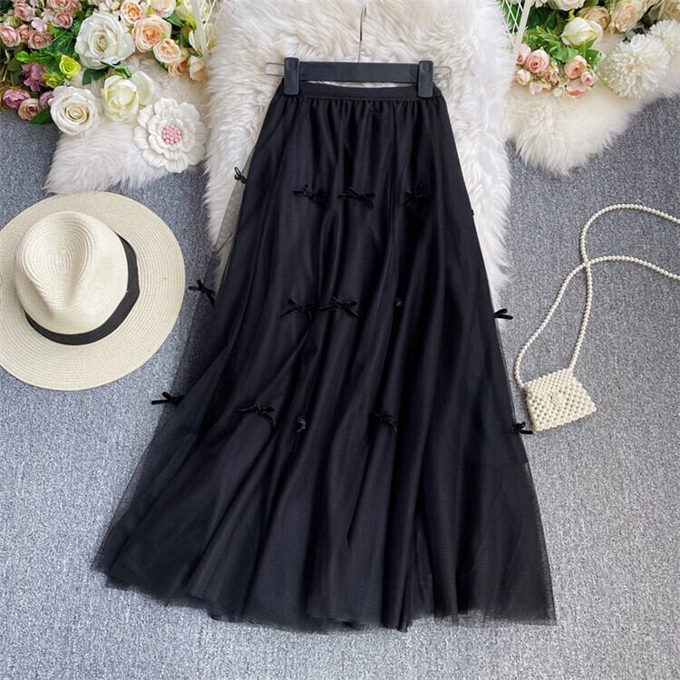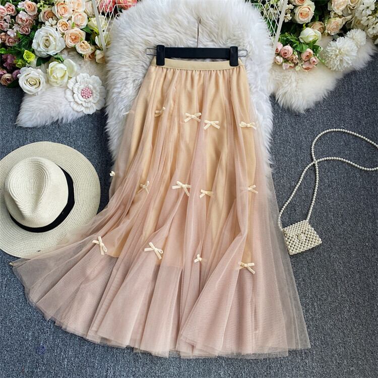 INSおすすめのホットスタイル!早い者勝ち デコレーション レーヨン 蝶結び スカート 秋 冬 Aライン
