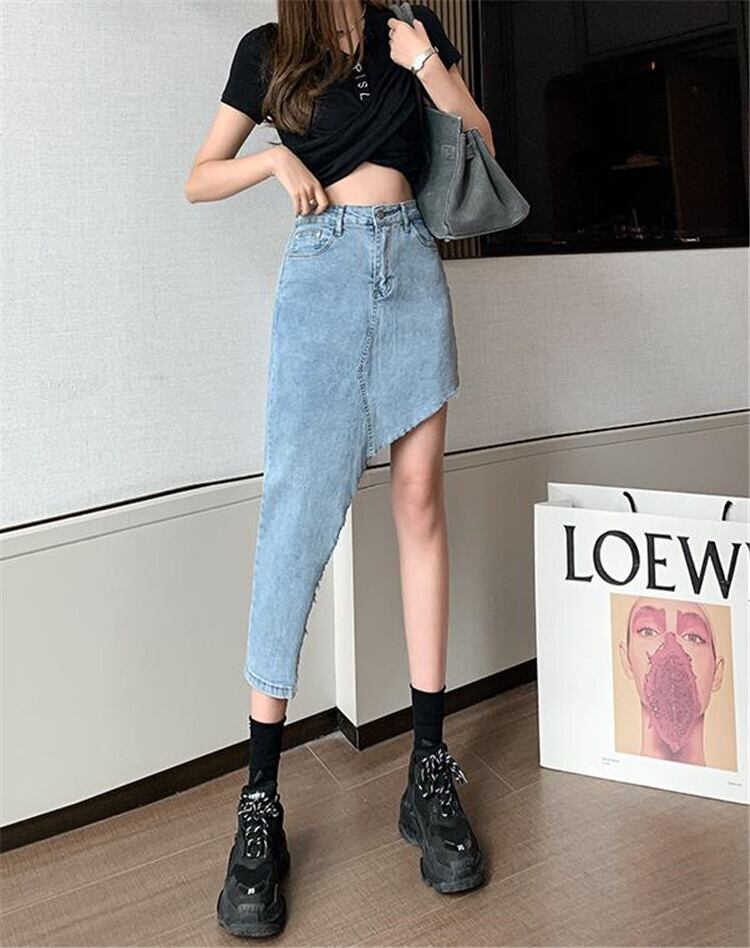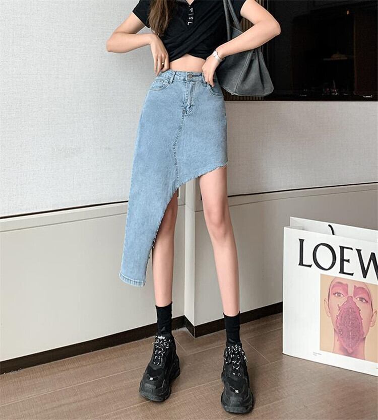 活気少女 激安セール 韓国風 中・長セクション ギャザリング 怠惰な風 デニムスカート ハイウエスト