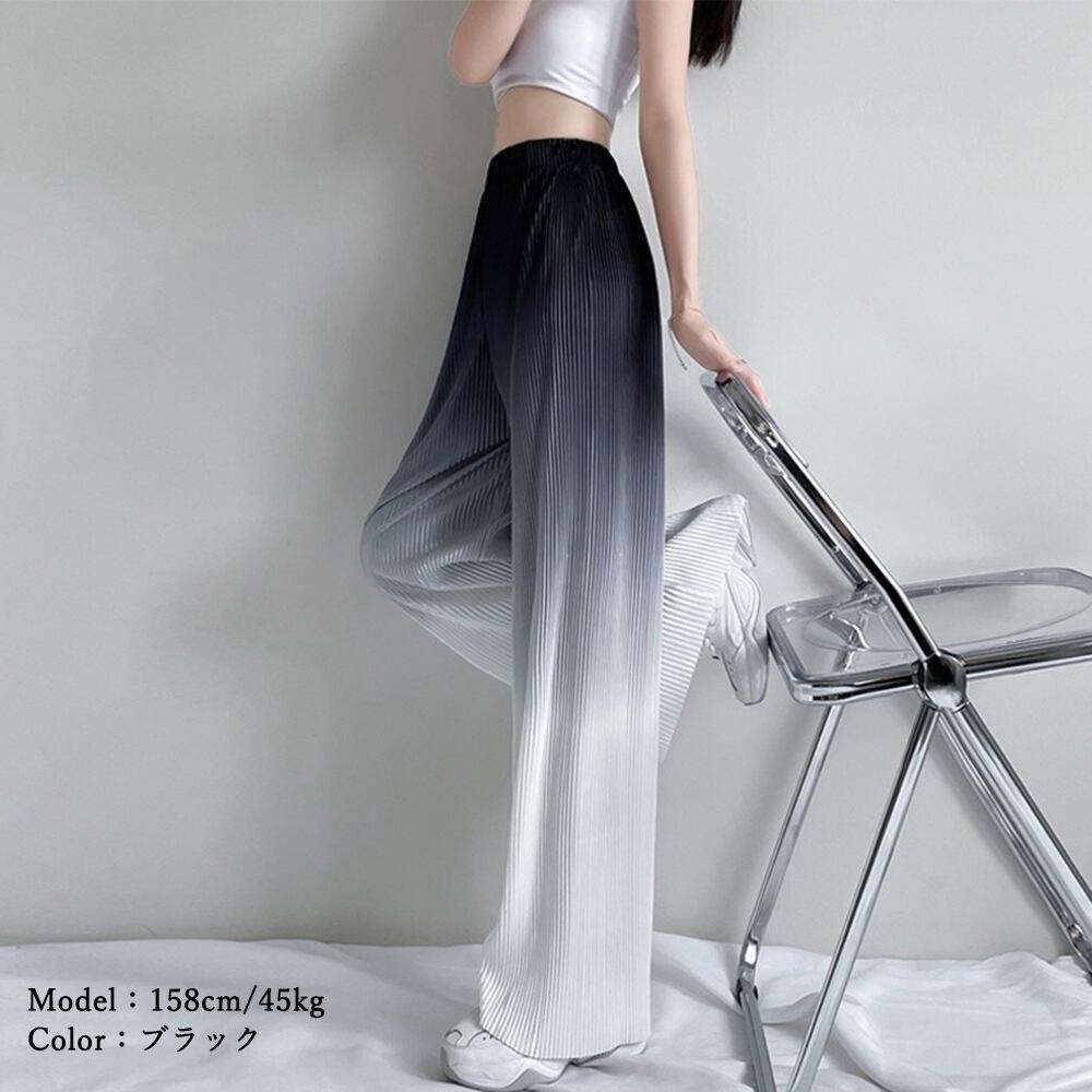 鮮やかなグラデーションカラーがコーディネートに華やかさを与えるプリーツワイドパンツ