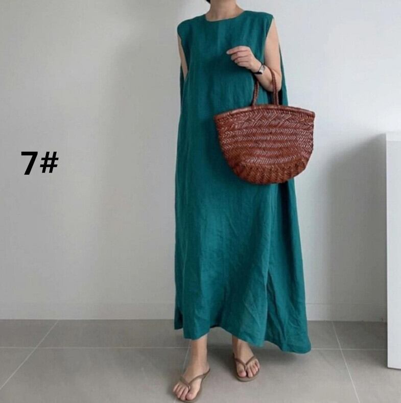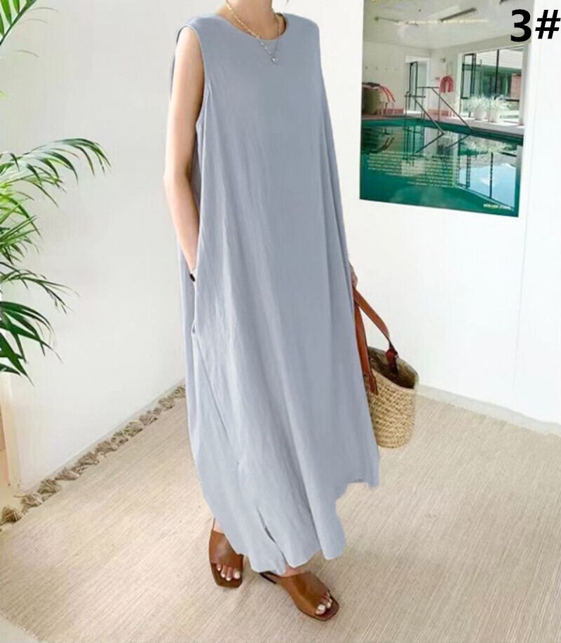 ワンピース ロング丈ワンピース レディース ノースリーブ ラウンドネック