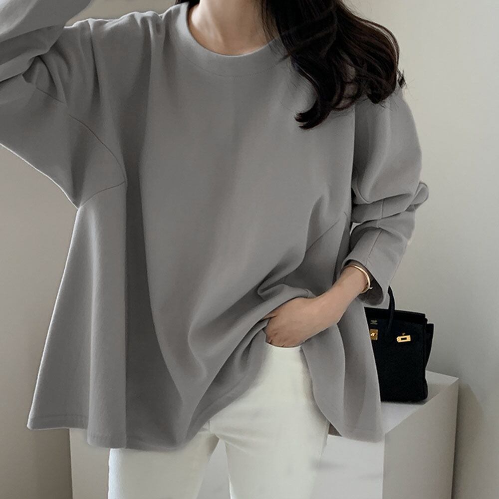 夏 tシャツ Tシャツ 長袖シャツ ビッグシルエット ラウンドネック 着回し
