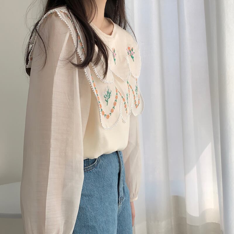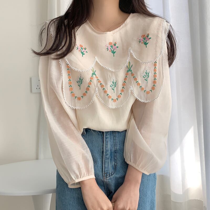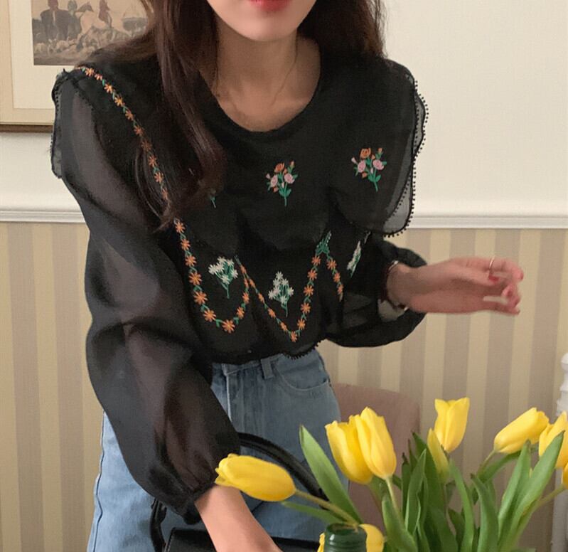 ブラウス 刺繍 レディーストップス 韓国風 人気シャツ Sweet 可愛い