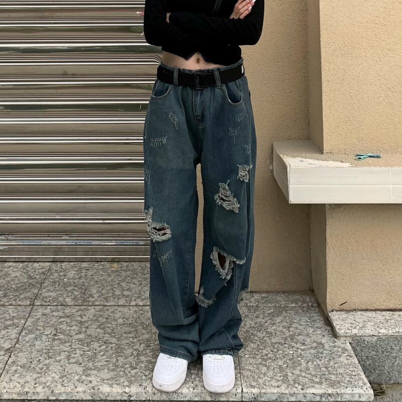 注目すべきアイテム 早い者勝ち ジーンズ ワイドパンツ デニム ハイウエスト ダメージ加工