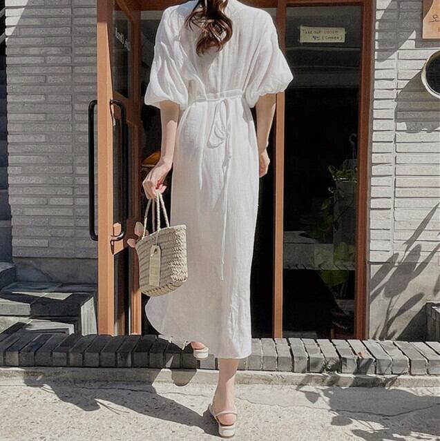 韓国風 ワンピース Vネック ロングワンピース レディース おしゃれ