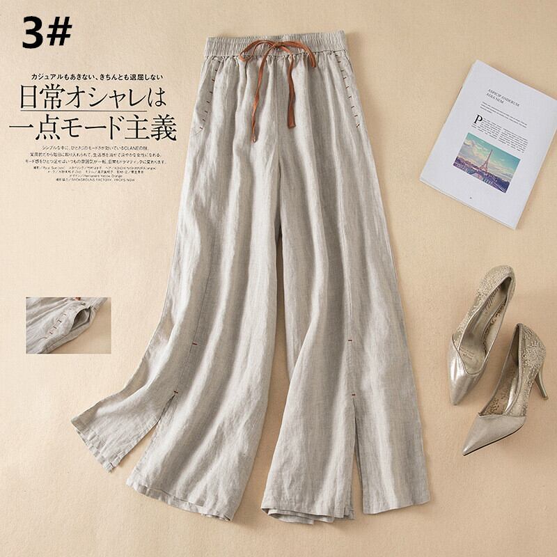 ワイドパンツ 9分丈 ボトムス レディースパンツ リネン 体型カバー ウエストゴム カジュアル