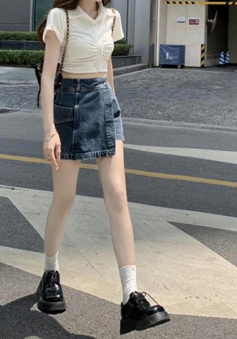 春夏 ボトムス 女 レディース ハイウエスト デニム ミニスカート ガウチョパンツ S-XL
