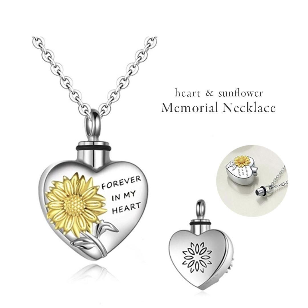 ネックレス ひまわり ハート シルバー 向日葵 遺骨ネックレス チェーン付き